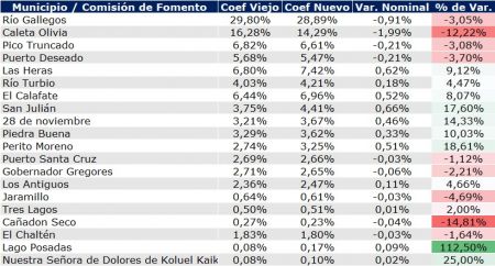 Cada vez que se realiza un censo de población, la provincia de Santa Cruz, a través del Ministerio de Economía, está obligada desde el año 2003 a actualizar los índices secundarios de coparticipación