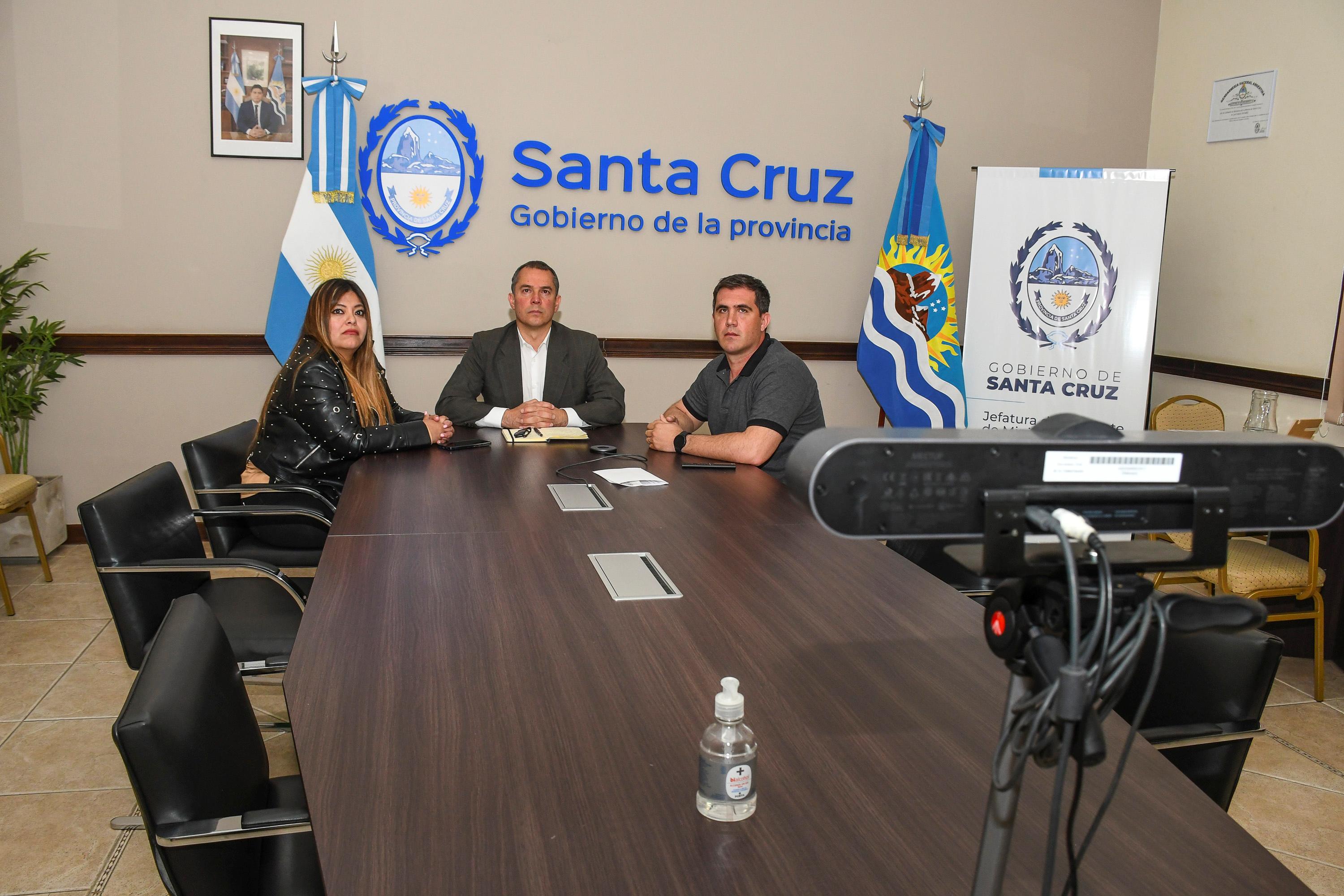 Autoridades del Gobierno Provincial participaron de una videoconferencia en Casa de Gobierno, con la finalidad de trabajar en la organización para que Santa Cruz sea sede del Mundial de Natación 2025.